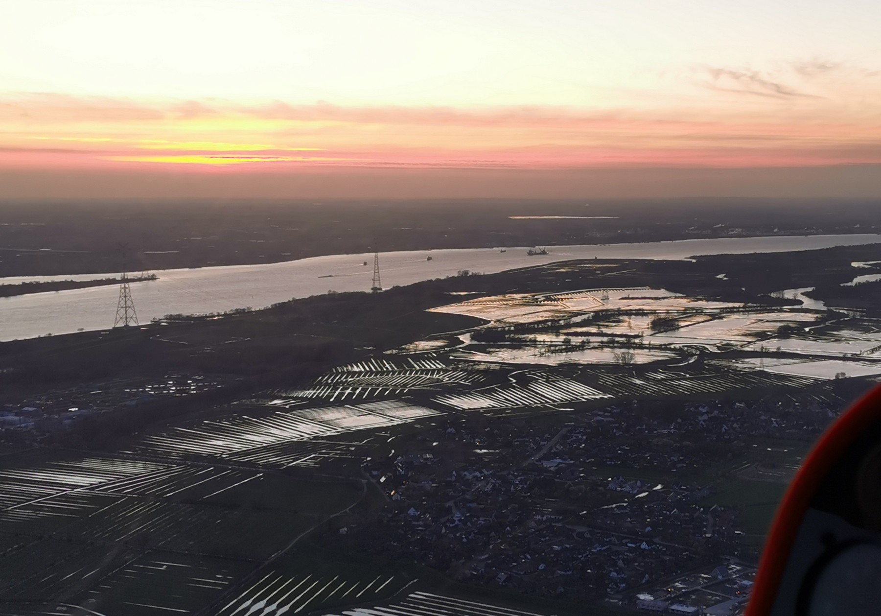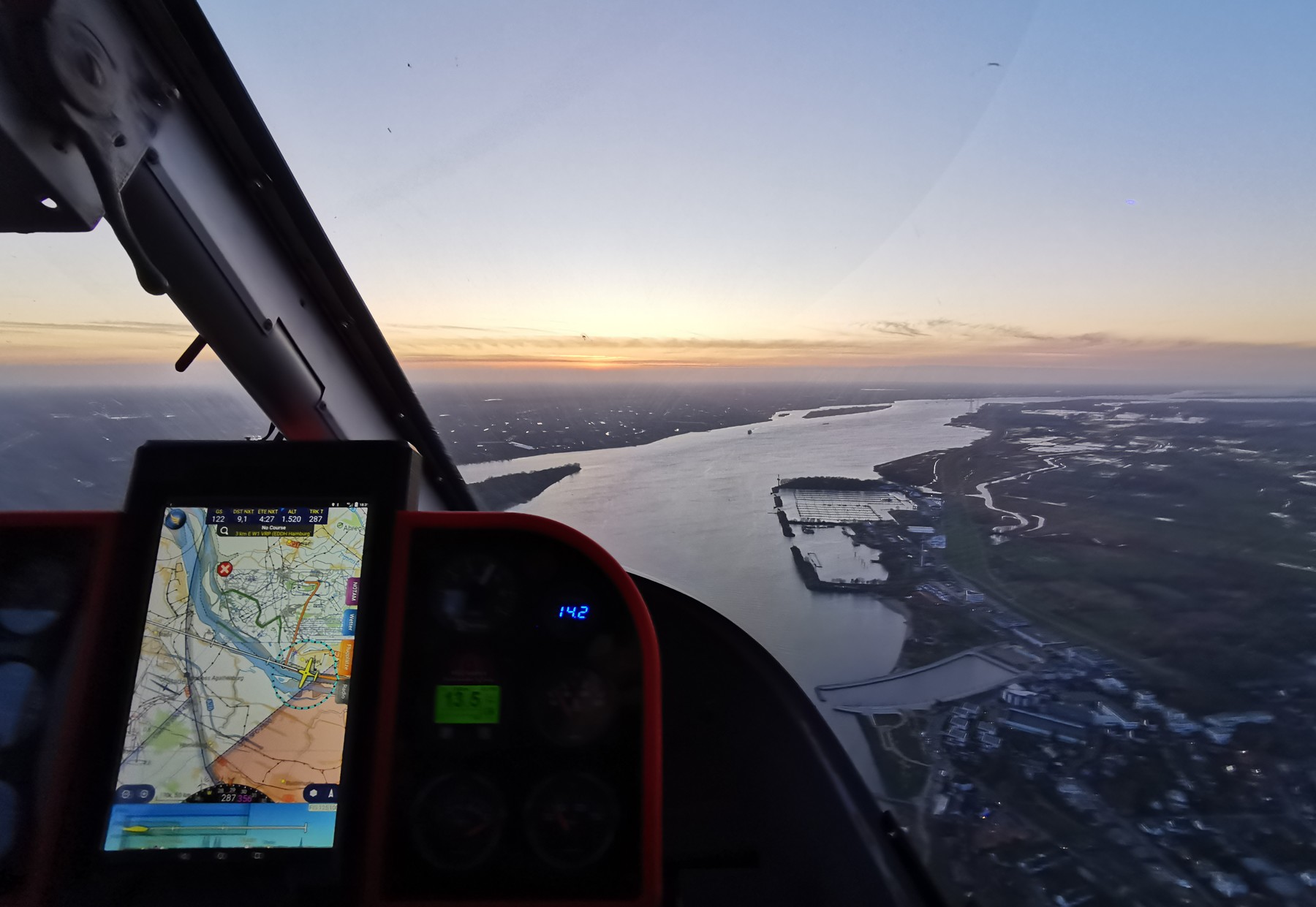 Am Samstag Abend bin ich eine halbe Stunde vor Sonnenuntergang mit Max zu einem Flug über Hamburg gestartet. Dabei hatten wir großes Glück - und durften einen Tiefanflug auf die beleuchtete Piste 05 des Flughafens Hamburg durchführen !