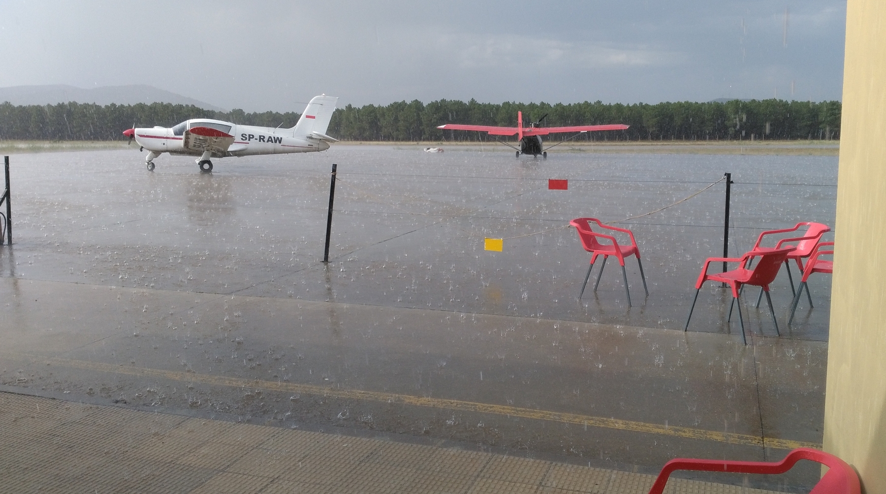 Kaum in Garray gelandet kam der Gewitterschauer.
